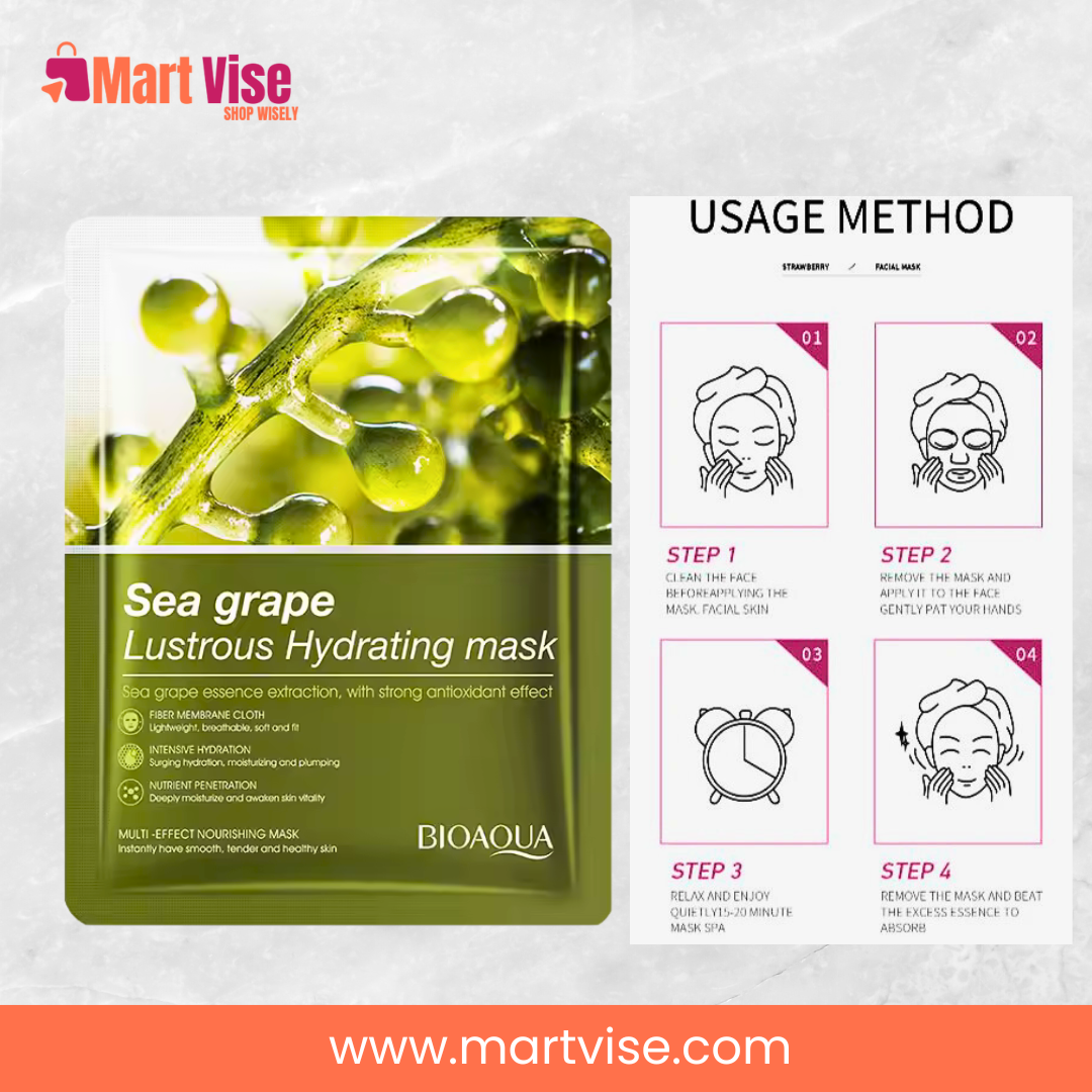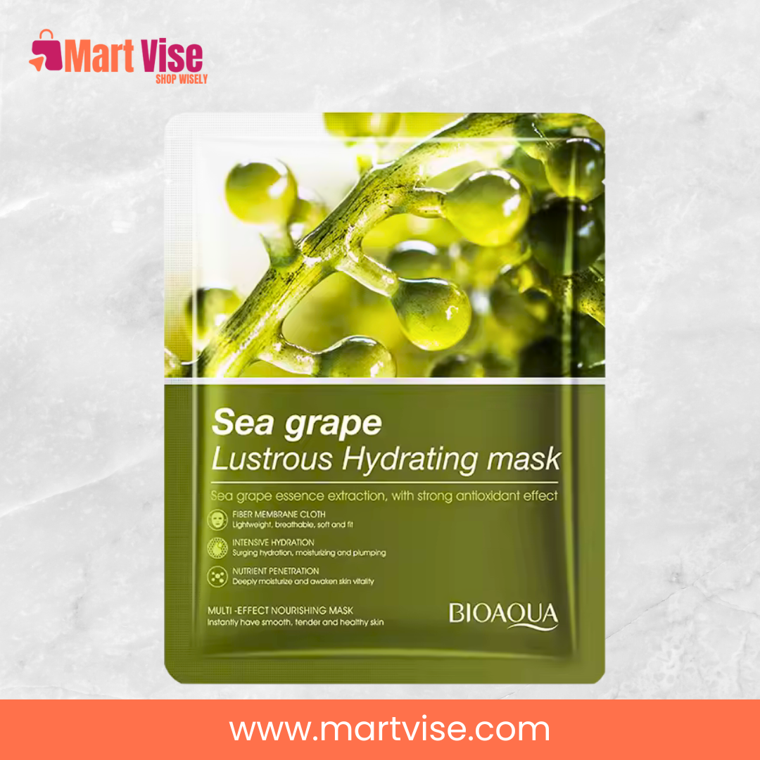 Rehydrate and glow with BioAqua Sea Grape Lustrous Hydrating Facial Mask—order now with COD in Pakistan!