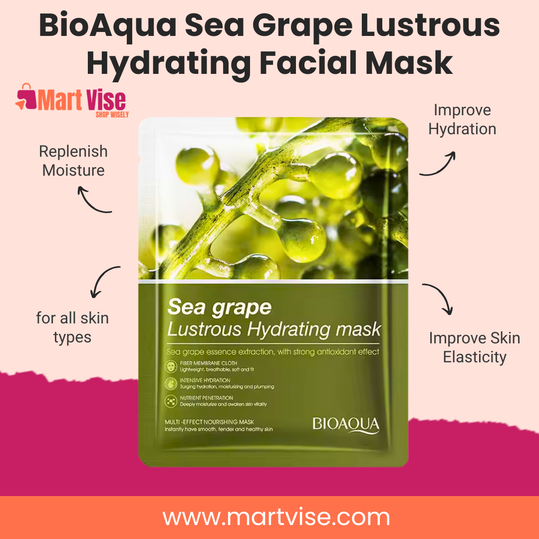 This mask is perfect for Pakistani skin, which often struggles with dryness, pollution, and climate changes. Whether preparing for a wedding, Eid photos, or daily freshness, the BioAqua Sea Grape Mask ensures a hydrated, glowing complexion that enhances natural skin tones.