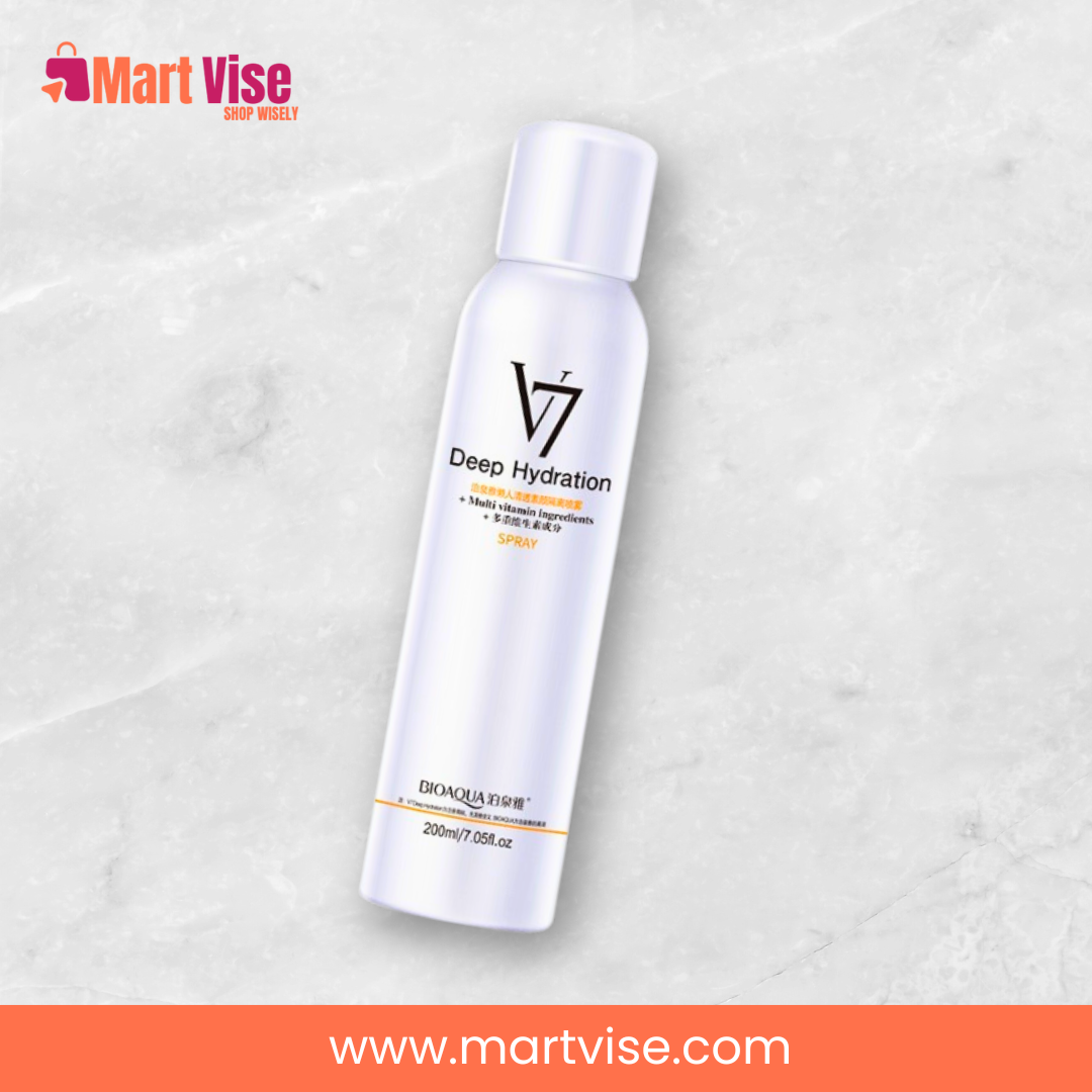 bioaqua V7 hydration spray is an easy, instant-refresh face mist made for skin that feels dry, dull, or tired. With a “V7” concept (7 vitamins) and a deep hydration spray format, it helps moisturise skin quickly while supporting a brighter, fresher look over time. In Pakistan, where heat, humidity, dust, and air-conditioning can leave skin feeling tight or dehydrated, a hydrating mist is a simple way to add comfort without messing up your routine.