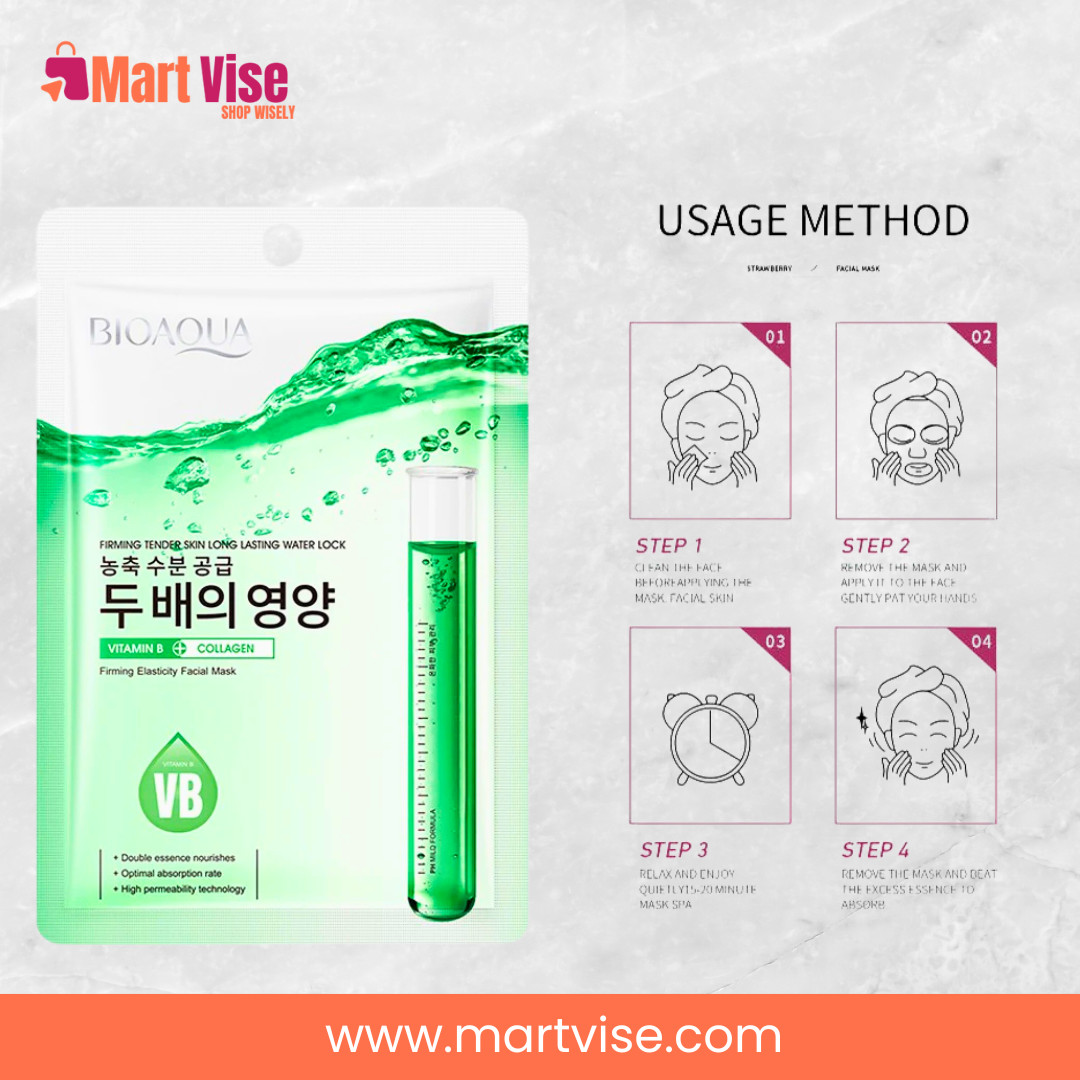 Get radiant, firm, and youthful skin with BIOAQUA Vitamin B Collagen Mask – order now!