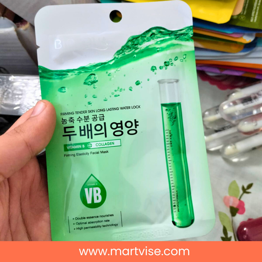 The BIOAQUA Vitamin B Collagen Firming Tender Skin Face Mask is your secret to plump, radiant, and youthful skin. Specially formulated with Vitamin B and collagen, it nourishes the skin deeply, locks in moisture, and improves elasticity. This hydrating sheet mask helps tighten sagging skin, smooth wrinkles, and restore natural radiance. In Pakistan’s hot and humid climate, where skin often gets dull and dehydrated, this face mask provides refreshing hydration and firmness in just 15–20 minutes. Easy to use and safe for all skin types, it’s a must-have skincare essential for anyone looking to maintain youthful and glowing skin. Whether used before a party, daily skincare, or as part of a pampering routine, this mask is a beauty essential every Pakistani woman deserves.