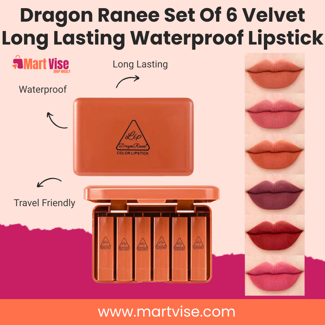 The Dragon Ranee Mini Matte Lipstick Set of 6 is the perfect combination of style, convenience, and affordability. This compact lipstick collection offers six stunning shades designed to complement Pakistani skin tones, from fair to dusky. Each lipstick delivers a smooth matte finish that lasts throughout the day without drying your lips. Its travel-friendly case makes it easy to carry, whether you’re heading to the office, university, a wedding, or an Eid celebration. Affordable in PKR and available with cash on delivery (COD) all over Pakistan, this lipstick set is a must-have addition to your beauty bag. With its rich pigmentation, long wear, and variety of shades, Dragon Ranee ensures you’re always ready to make a statement.