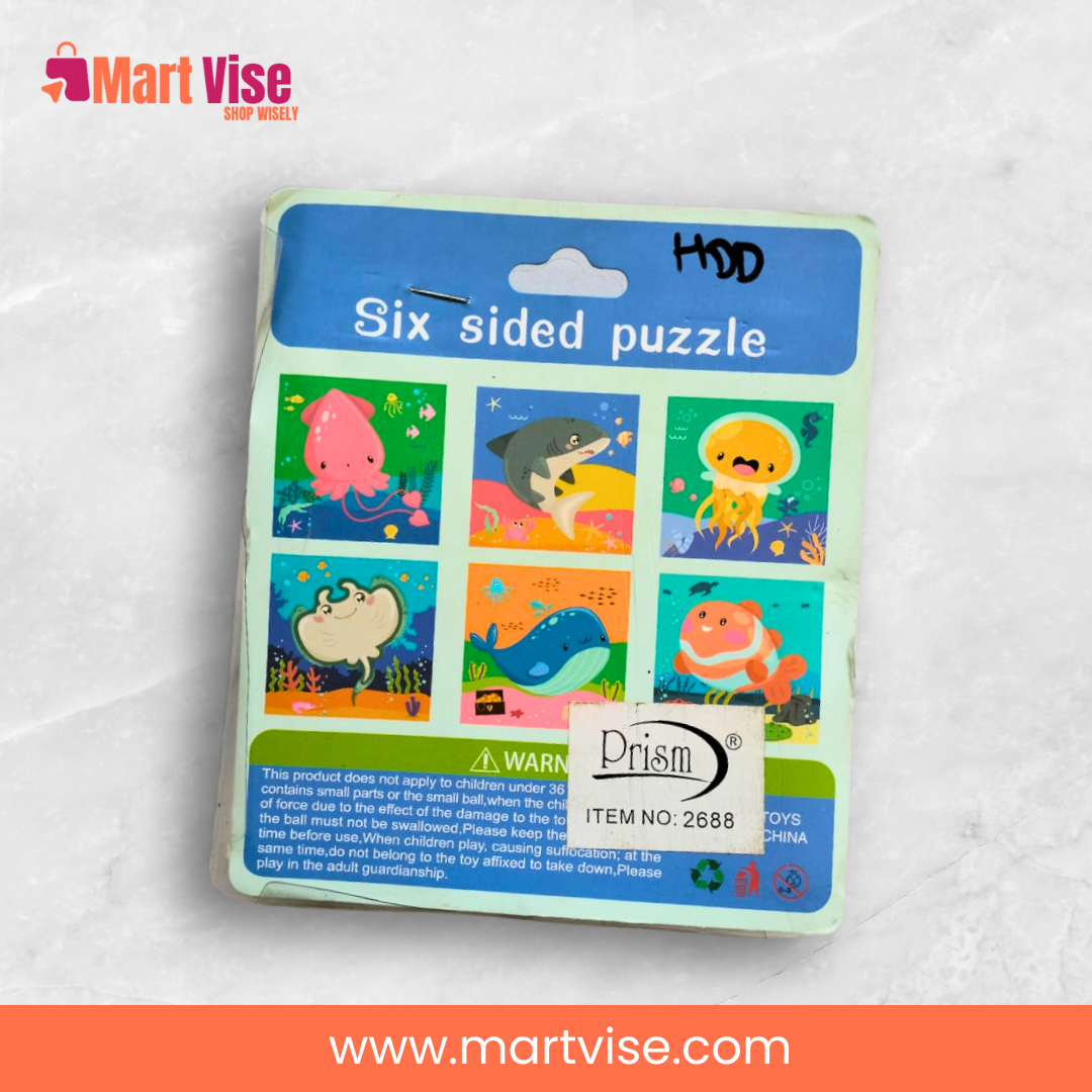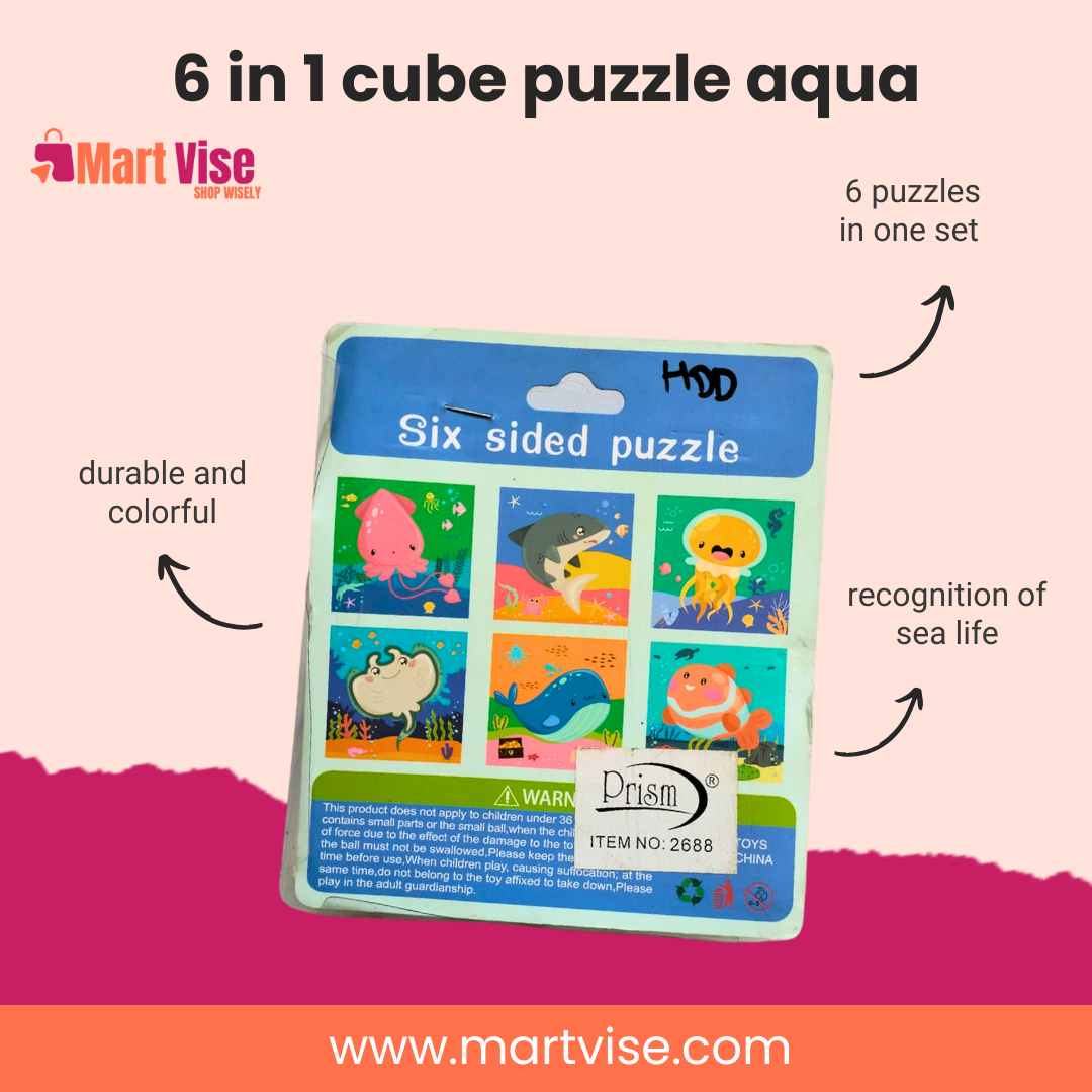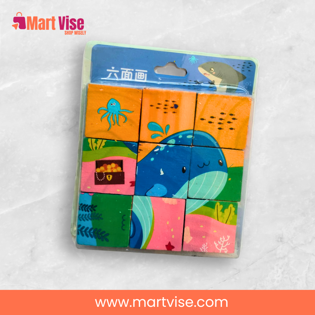 The 6 in 1 Cube Puzzle – Aqua is a creative wooden puzzle set that introduces young learners to the colourful world of sea life. Designed for children aged 3 years and above, this educational toy includes six ocean-themed puzzles — from sharks and whales to jellyfish and octopuses. Made of high-quality, non-toxic wood, it’s both safe and durable, perfect for little hands. Each cube has multiple sides with unique sea creature images, promoting visual recognition, problem-solving, and fine motor development. Ideal for homes and preschools in Pakistan, this puzzle encourages screen-free play and early STEM learning. With vibrant illustrations and sturdy design, it’s great for gifts, travel, or daily fun. Available with Cash on Delivery across Pakistan, it’s a thoughtful choice for parents who value educational toys.