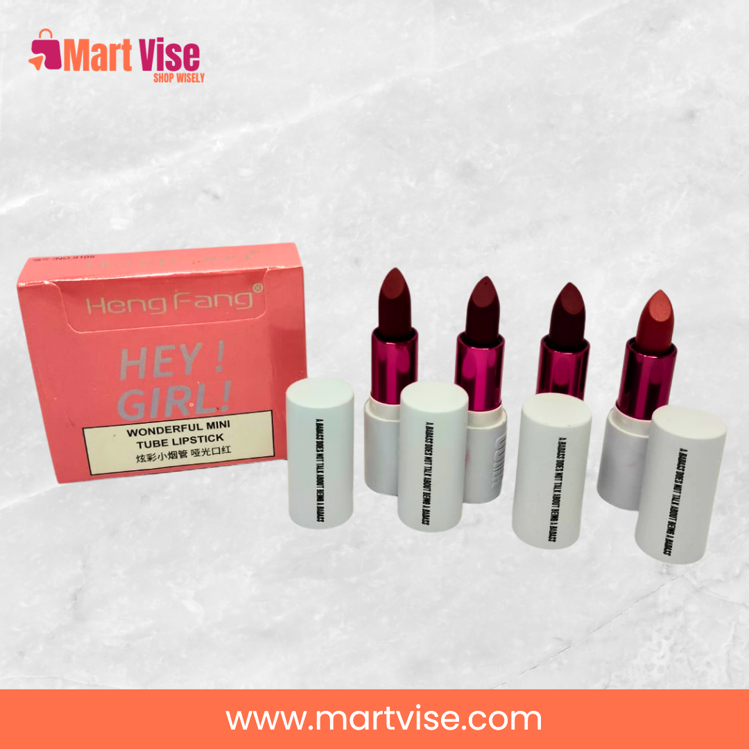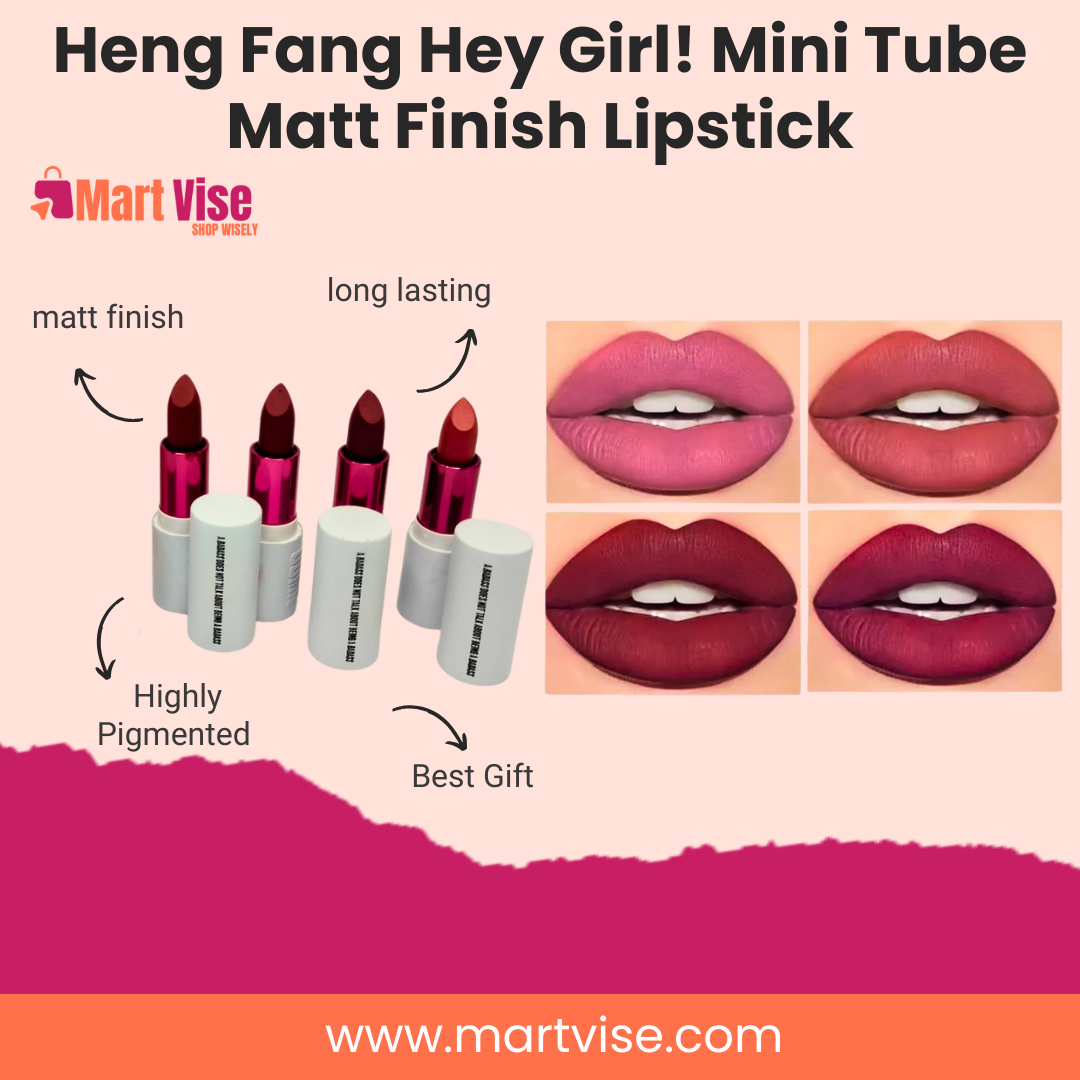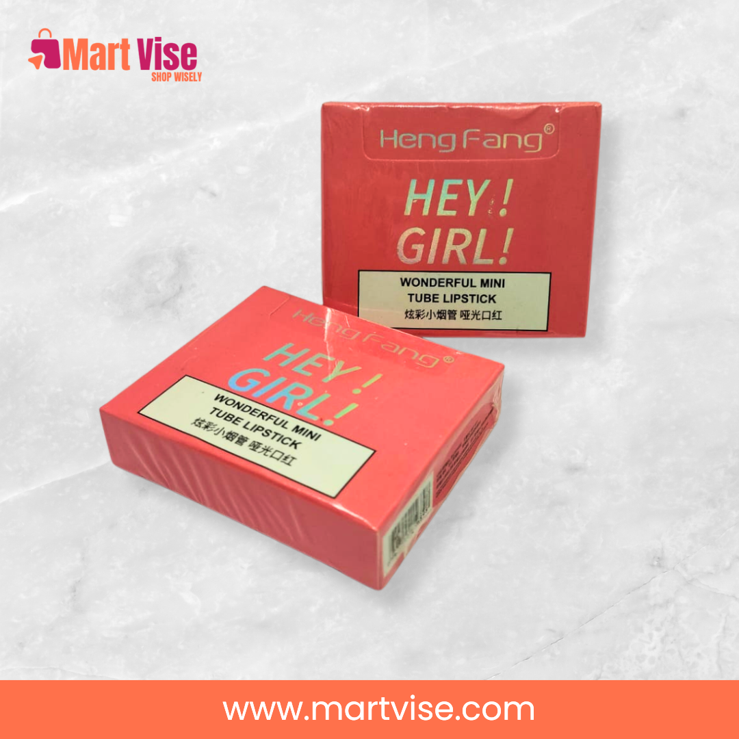 Heng Fang Hey Girl! Mini Tube Matte Finish Lipstick is the ultimate combination of portability, pigment, and performance. Designed in cute, travel-friendly mini tubes, these lipsticks are perfect for women who want bold, matte colour without carrying bulky packaging. Each lipstick delivers rich pigment in a smooth, matte finish that lasts for hours, making it ideal for daily wear, office looks, or glamorous party makeup. Compact yet stylish, these lipsticks are also perfect as a gift for friends, bridesmaids, or loved ones. With affordable PKR pricing and COD delivery across Pakistan, Heng Fang ensures that you can enjoy high-quality matte lipsticks without breaking the bank.