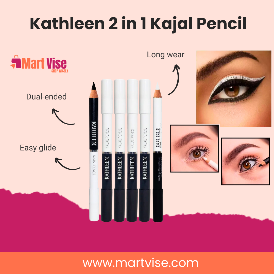 Elevate your eye game with the Kathleen 2 in 1 Kajal Pencil, a must-have for every makeup lover! This dual-ended pencil features deep black and bright white kajal, allowing you to create bold, defined, or wide-eyed looks effortlessly. Its smooth, easy-glide formula delivers intense pigmentation in just one stroke, while the long-lasting wear ensures your eyes stay captivating all day. Whether you prefer classic kohl-rimmed eyes or trendy graphic liners, this kajal pencil does it all — with comfort, precision, and no smudging.