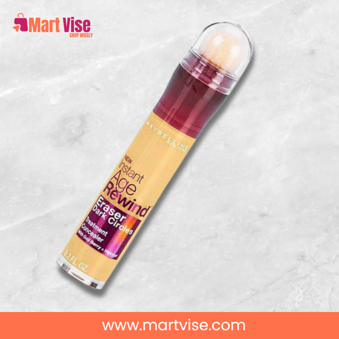 Say goodbye to dark circles and dull under-eyes with Maybelline Instant Age Rewind Concealer in Shade 110 Fair. This award-winning concealer is a must-have for achieving fresh, youthful, and radiant skin. Enriched with goji berry and Haloxyl, it visibly reduces fine lines, puffiness, and dark circles while hydrating the delicate eye area. Perfect for Pakistani women who deal with long days, late nights, and sun exposure, its creamy texture provides smooth, crease-resistant coverage that lasts all day. Shade 110 Fair offers brightening coverage for lighter complexions or for highlighting specific areas of the face. Ideal for both daily wear and special occasions, this concealer delivers a natural, flawless look that feels weightless and blends seamlessly. Available with cash-on-delivery and fast shipping all over Pakistan.