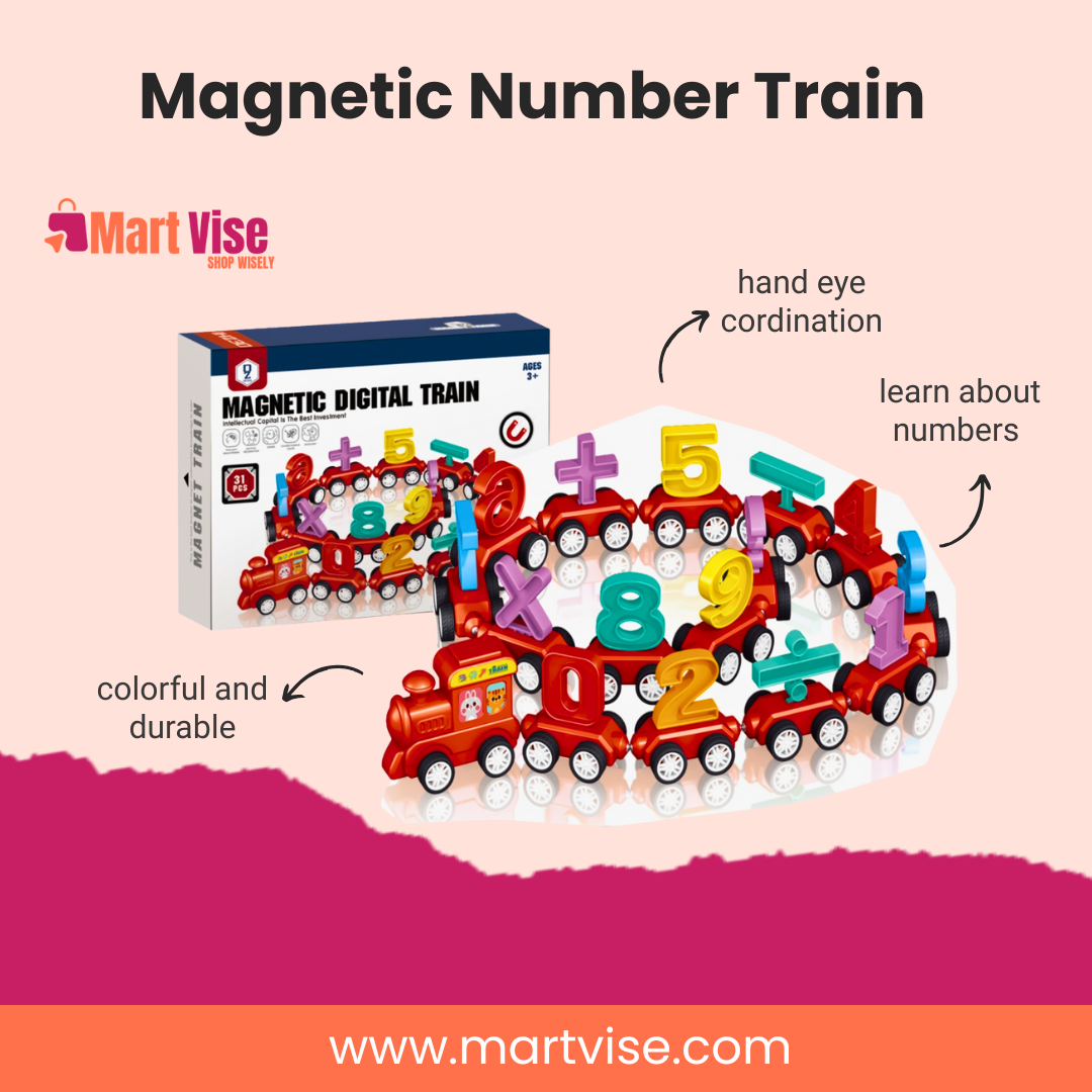 Unlike ordinary toys, this magnetic train combines maths and motion in one set. Each carriage connects easily with magnets, letting kids build endless train combinations while learning digits and operations. Crafted from high-quality wood, it’s eco-friendly and long-lasting — ideal for families looking for safe, durable toys in Pakistan.