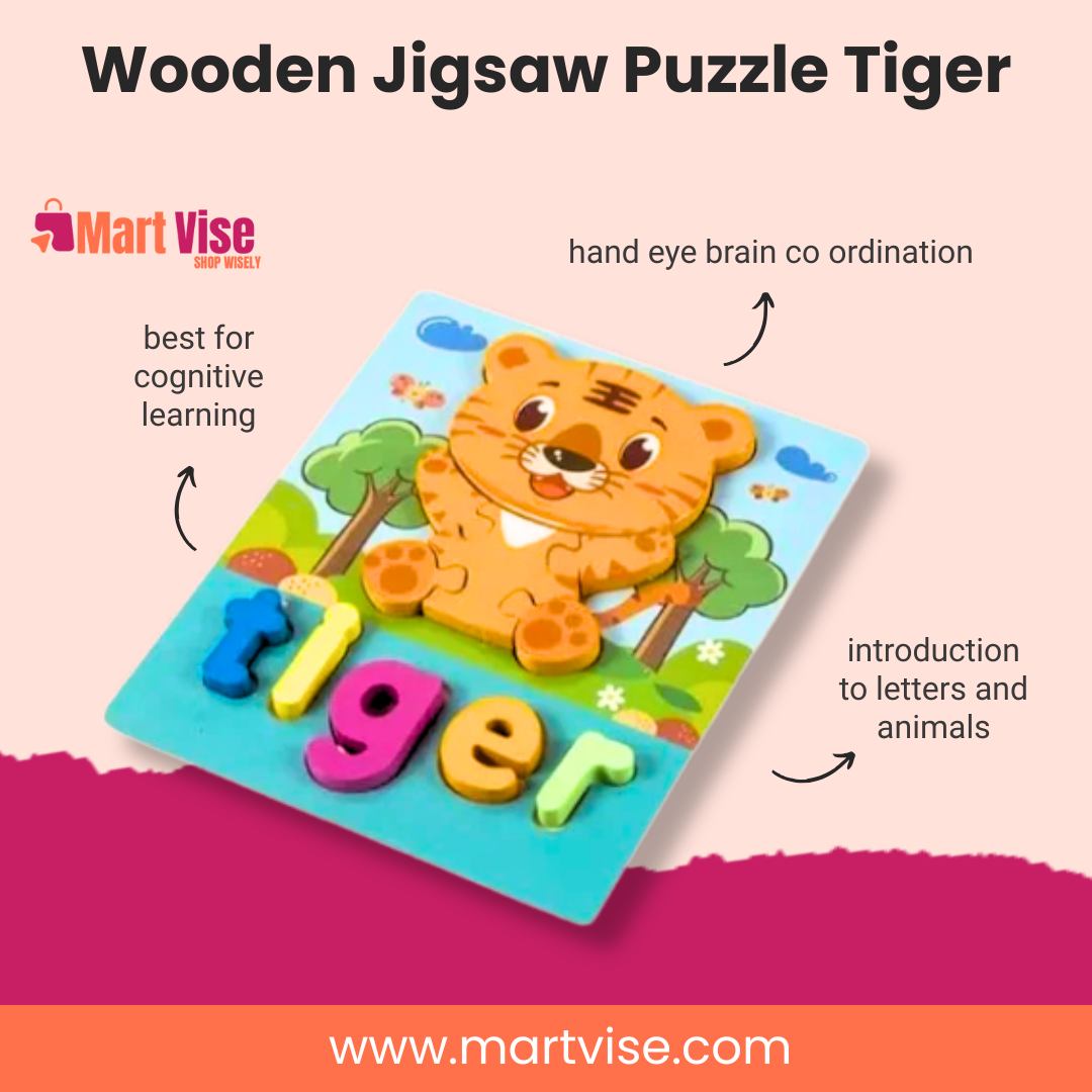 The Wooden Jigsaw Puzzle Tiger is a fun, engaging, and educational toy designed to enhance early childhood learning. Crafted from smooth, eco-friendly wood, it features a cute tiger design with brightly coloured puzzle pieces that help children recognise shapes, animals, and letters. Ideal for toddlers and preschoolers in Pakistan, this puzzle supports hand-eye coordination, fine motor skills, and brain development. It encourages kids to think, match, and learn while having fun. Safe, durable, and perfectly sized for little hands, the Wooden Tiger Puzzle makes a great learning tool and a delightful gift for any curious child. With Cash on Delivery available nationwide, it’s an easy choice for smart parents who value educational play.