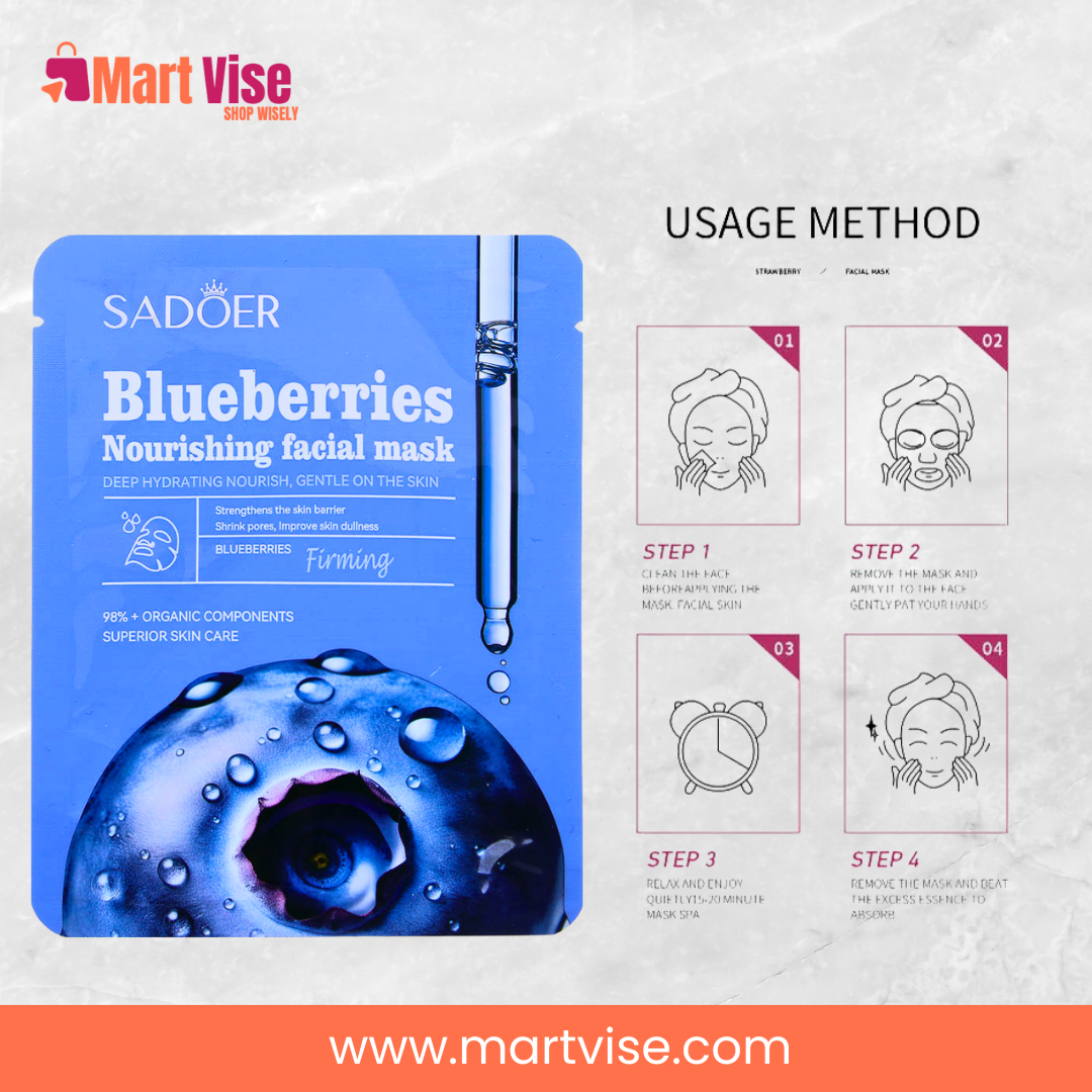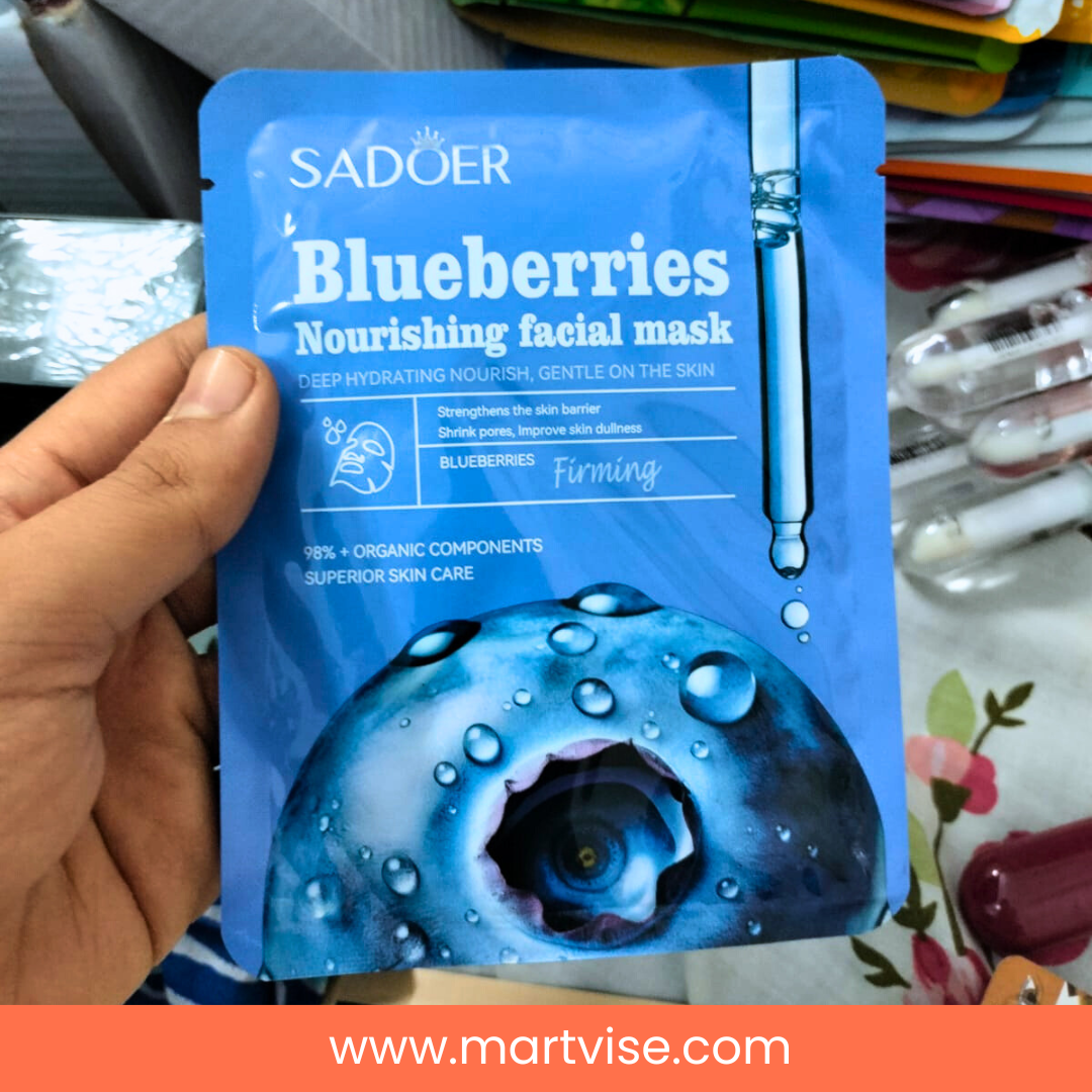 Refresh, hydrate, and glow with Sadoer Blueberries Nourishing Sheet Mask—order now with COD in Pakistan!