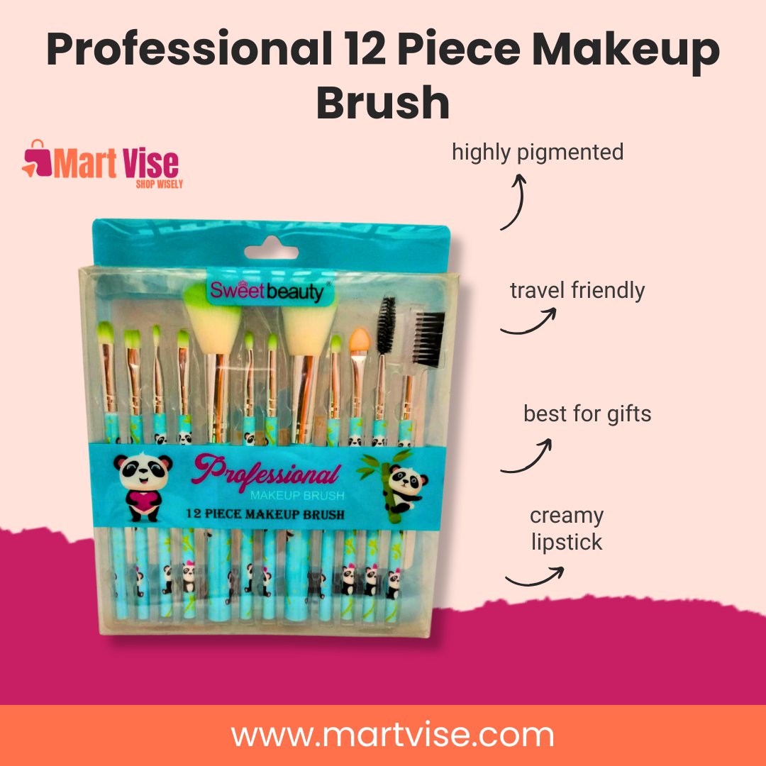 Get flawless, professional makeup results anywhere in Pakistan with this adorable 12-piece brush set!