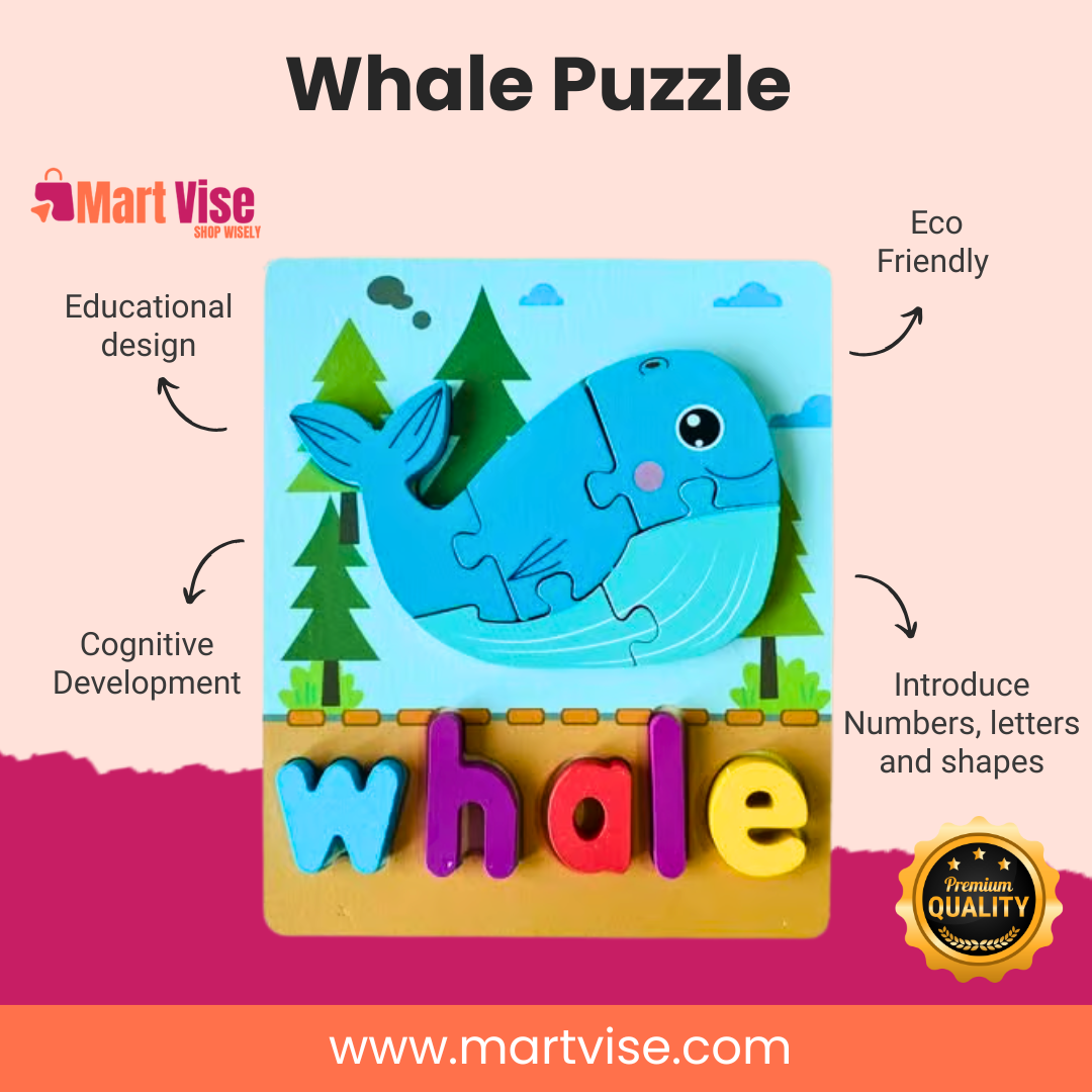 Pakistani parents value durable, affordable, and eco-friendly toys. This whale puzzle introduces literacy and animal learning in a fun, engaging way, perfect for daily play and gifting.